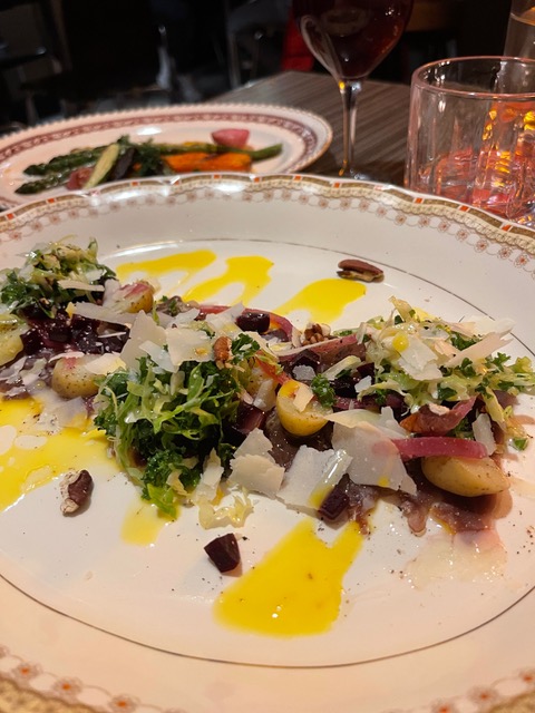 The wine list, for the most part, features wines from France and Italy, with a few bottles from the US, Portugal, Austria, and Slovenia. With my cocktail gone, Enzo suggests a glass of MO Rot, a red Zweigelt from Austria. It’s light and a little fruity, and while I prefer white wines, I quite like the MO Rot.